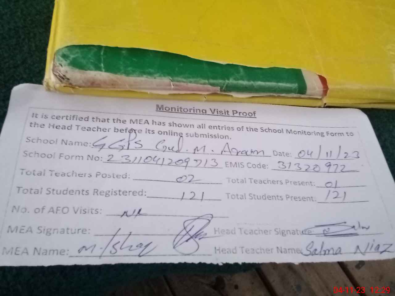 | EMIS Code: 31320972 | Name of School: GGPS GUL MUHAMMAD ARAIN | |||