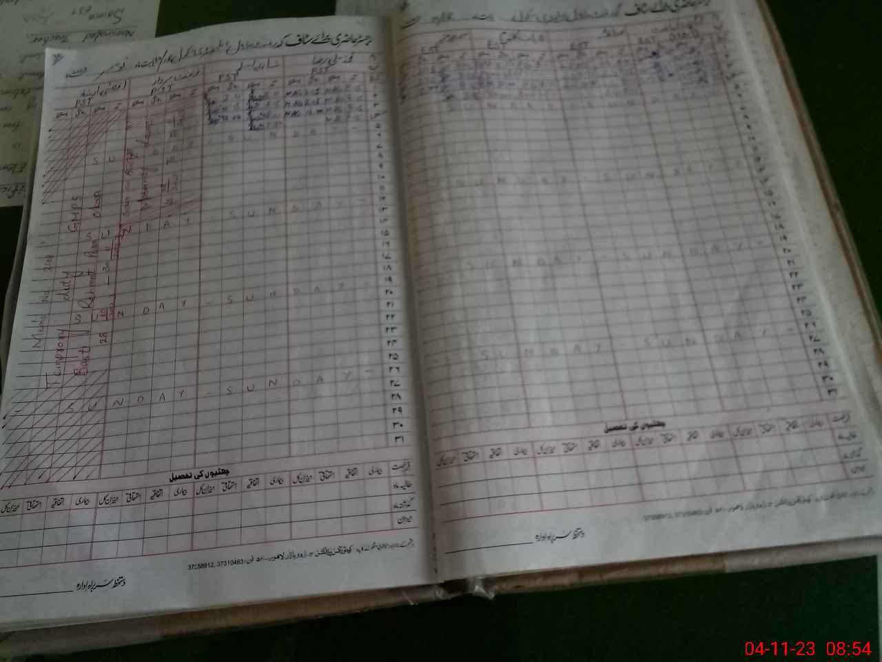 | CNIC | Full Name | Designation | R/C | Absence During Last Calender Month |