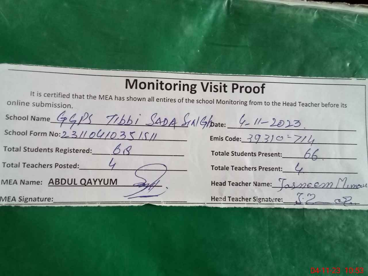 | EMIS Code: 39310714 | Name of School: GGPS TIBI SADA SINGH | |||