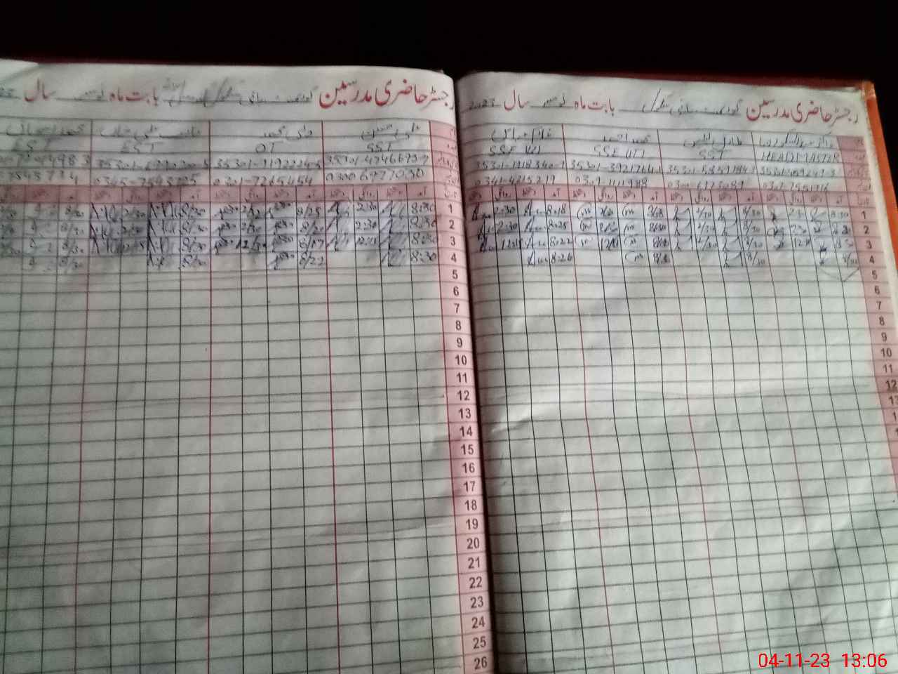 | CNIC | Full Name | Designation | R/C | Absence During Last Calender Month |