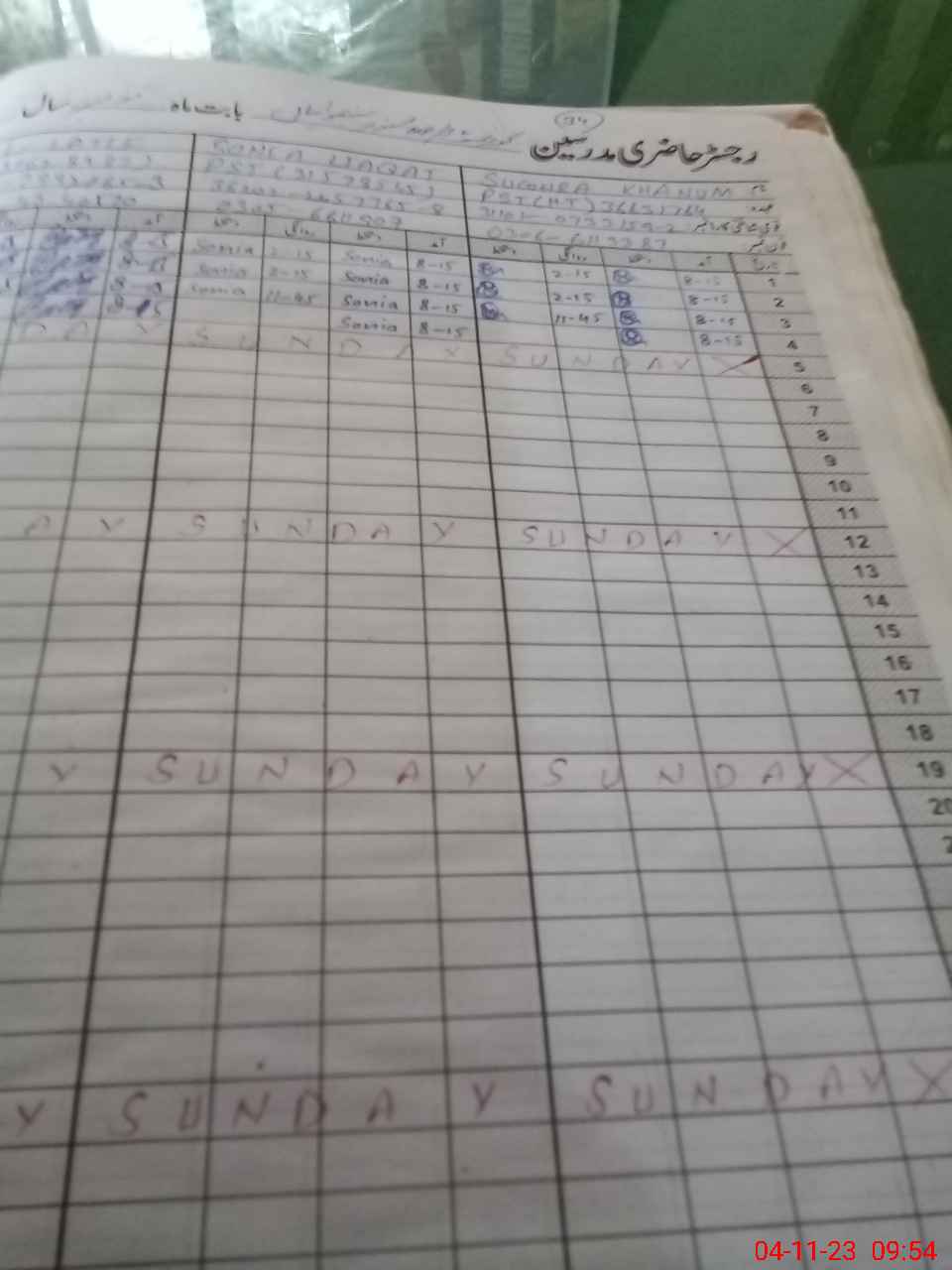 | CNIC | Full Name | Designation | R/C | Absence During Last Calender Month |