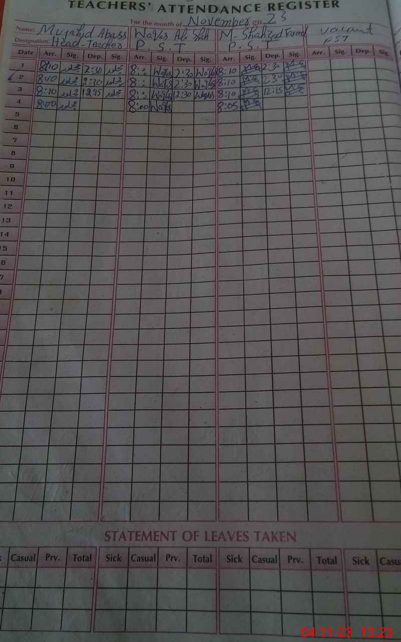 | Name: Wa**** Al**** Sh**** Designation: (School Headmaster's/Headmistress's) PST Phone/Cell Number: 03**** |