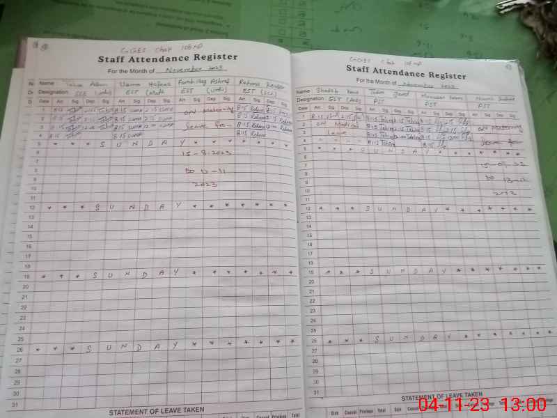 | 31**** | Sh**** Ba**** | 1 | 12 | 0 | 0 | 0 | 7 | 0 | 0 | 0 | 5 | Absent (Un-Authorized) | |