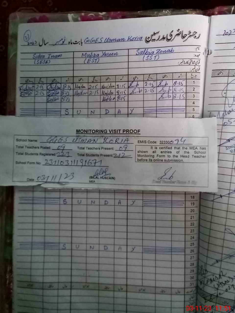 | EMIS Code: 32330094 | Name of School: GGES USMAN KORIA | |||
