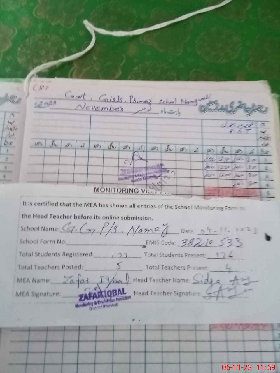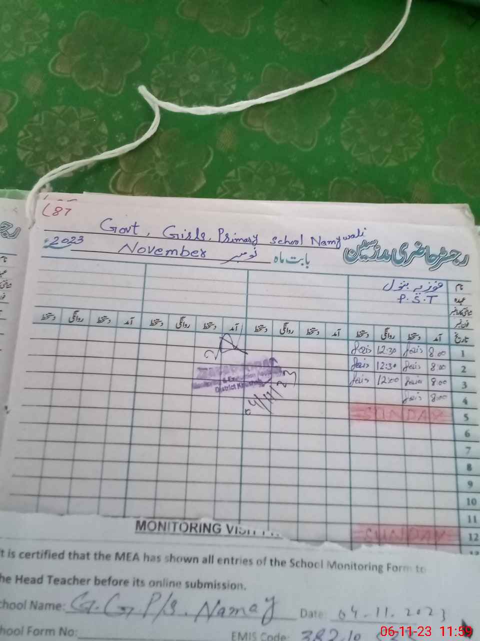 | EMIS Code: 38210533 | Name of School: GGPS NAMAY WALI | |||
