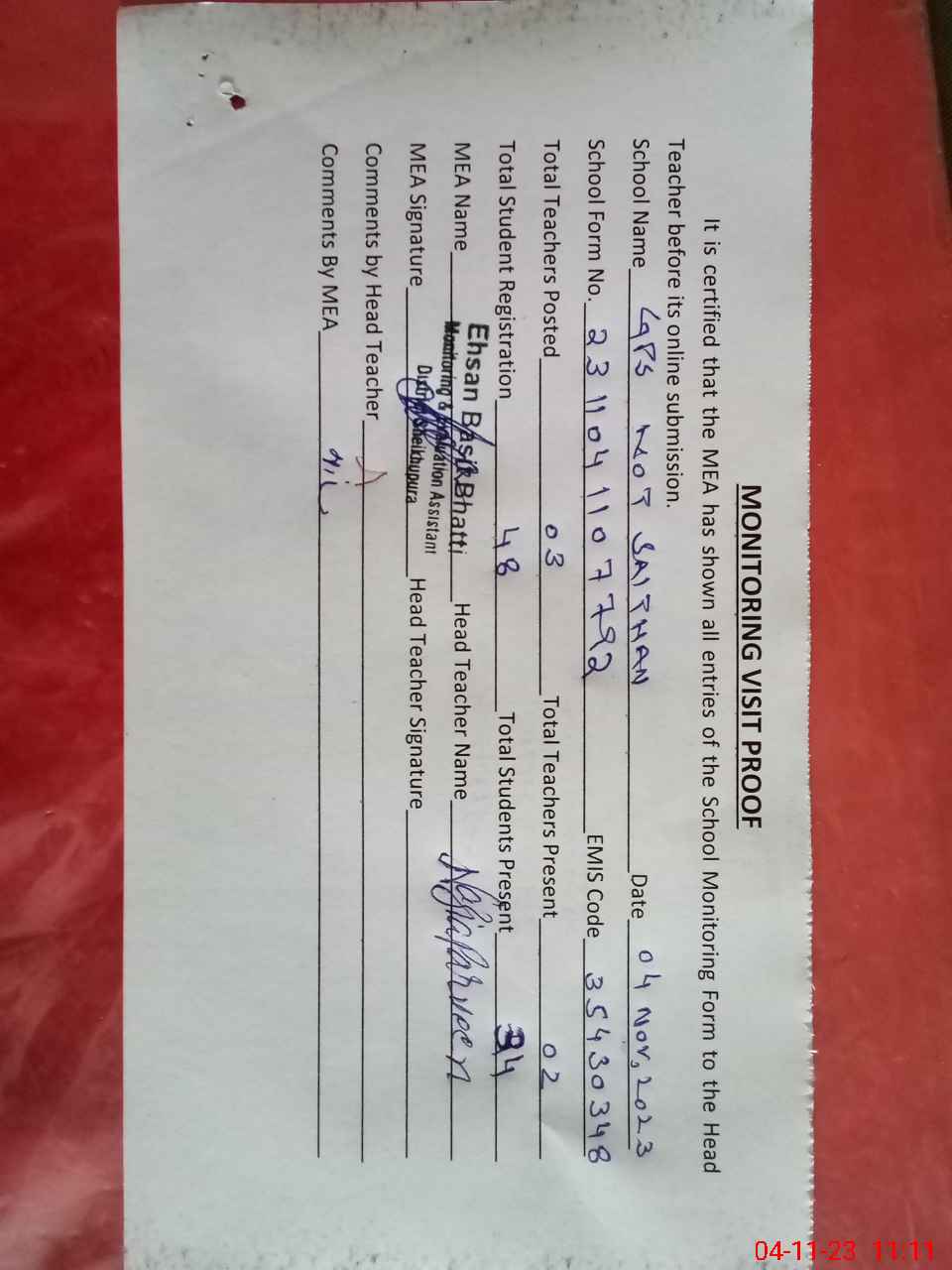| EMIS Code: 35430348 | Name of School: GPS KOT SAITHAN SKP | |||