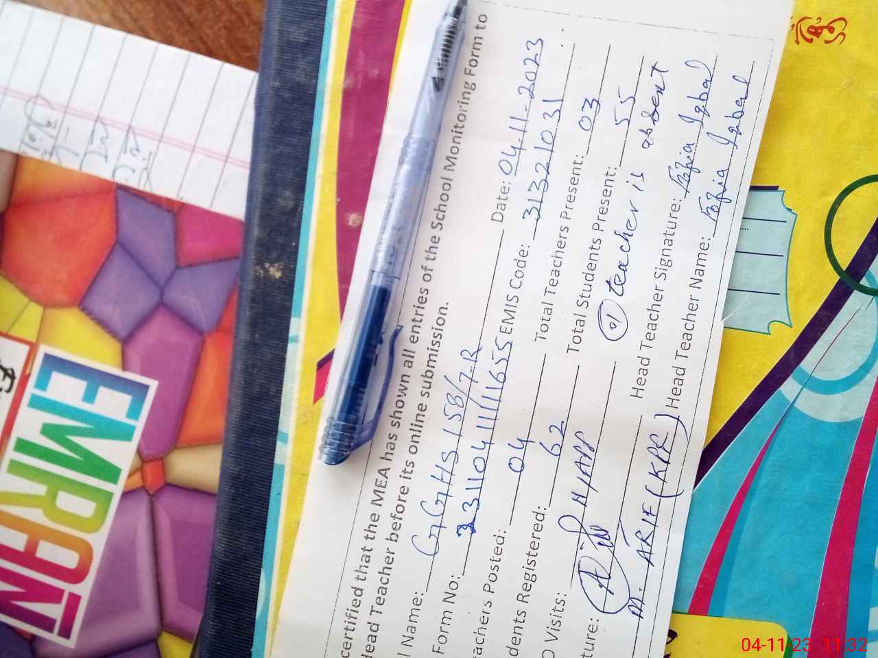 | Attendance Register | Head Teacher | MEA with School | Visit Proof |