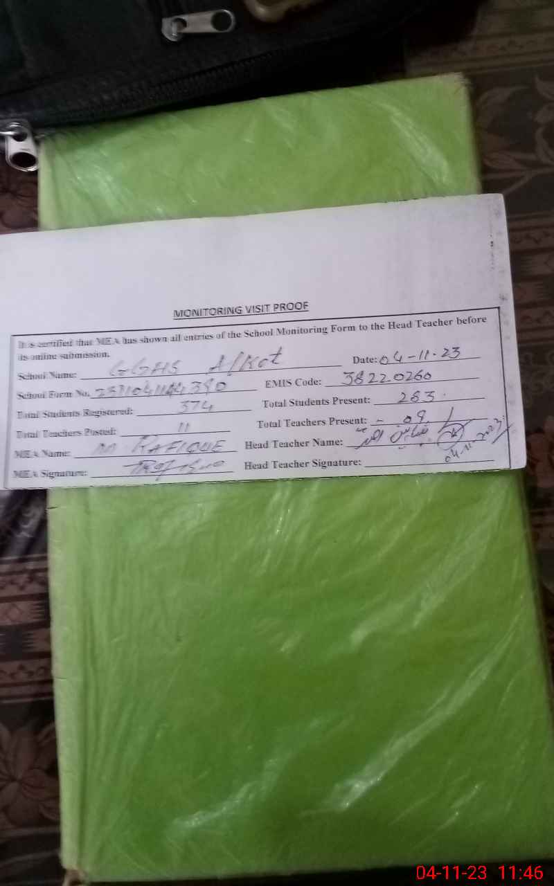 | EMIS Code: 38220260 | Name of School: GGHS ADHI KOT | |||