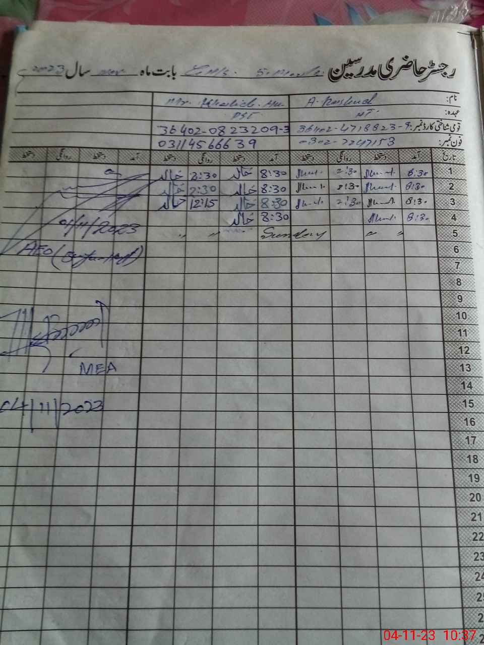| Name: Kh**** Hu**** Designation: (School Headmaster's/Headmistress's) PST Phone/Cell Number: 03**** |