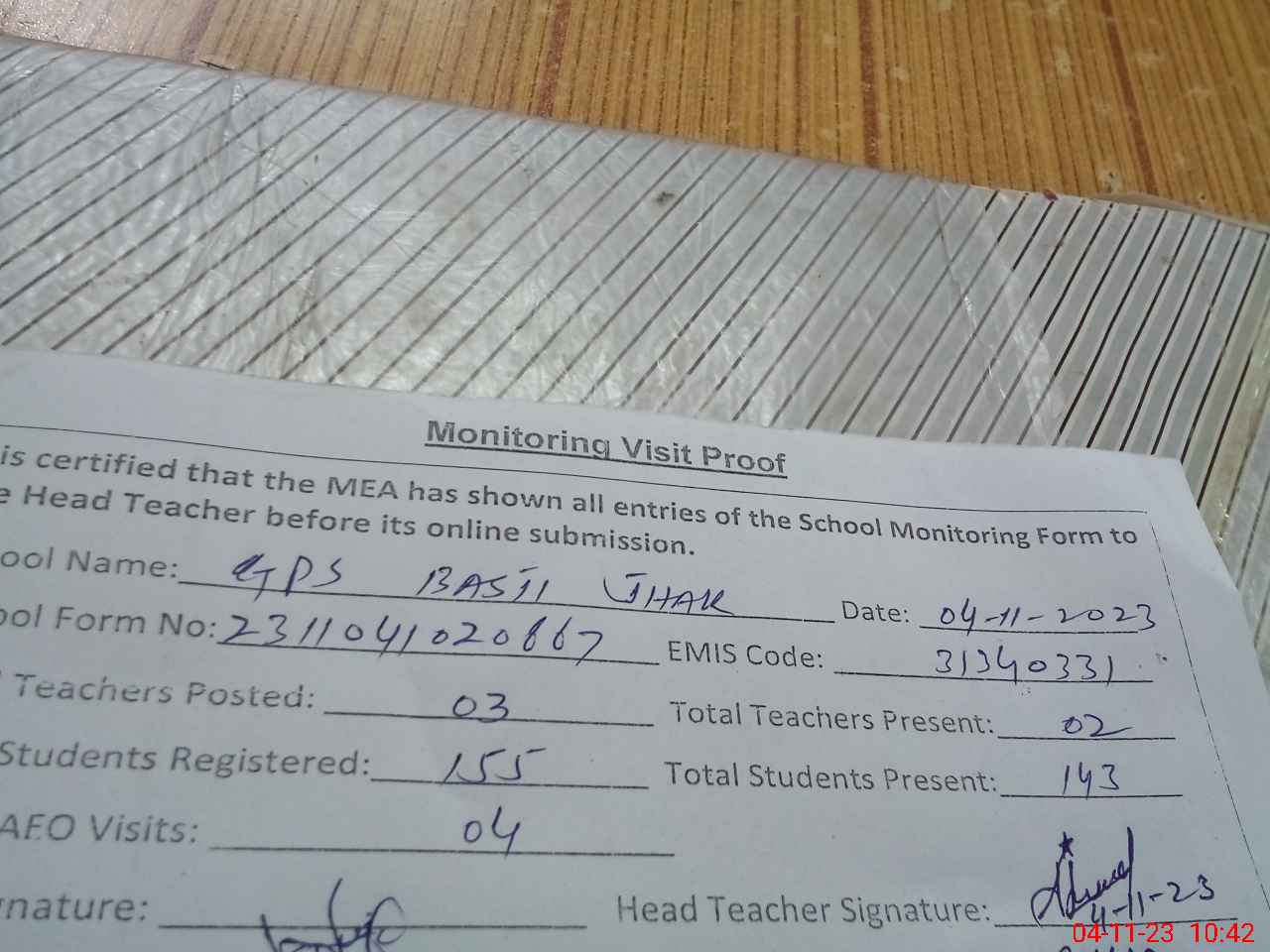 | EMIS Code: 31340331 | Name of School: GPS BASTI JHAK | |||