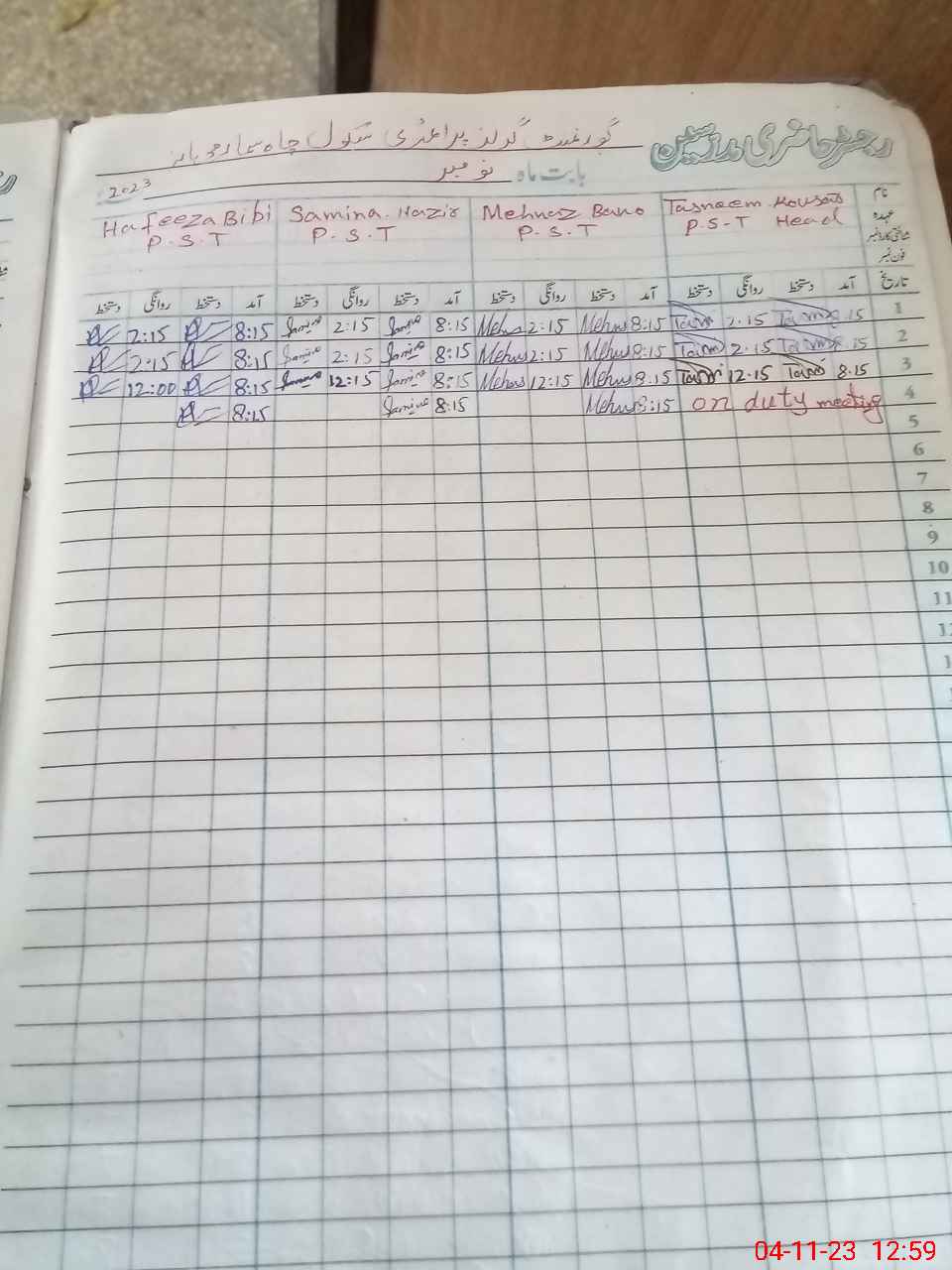 | Monitoring Date: 04-11-2023 | Start Time: 04-11-2023 12:47 PM | End Time: 04-11-2023 01:03 PM | Name of MEA: Sa**** ulHa**** | |