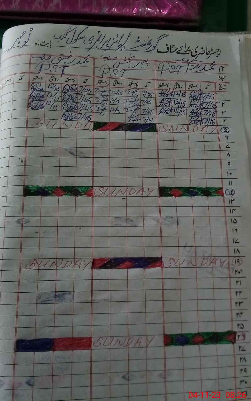 | Name: M.**** Designation: (School Headmaster's/Headmistress's) PST Phone/Cell Number: 03**** |