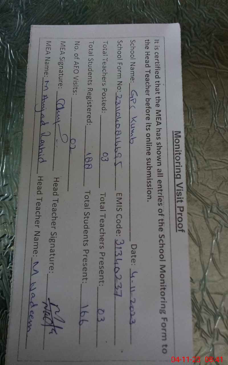 | EMIS Code: 31340237 | Name of School: GPS KUMB | |||