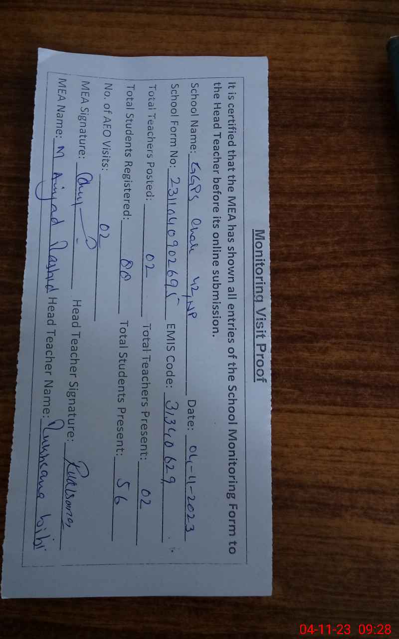 | EMIS Code: 31340629 | Name of School: GGPS CHAK 42/NP | |||