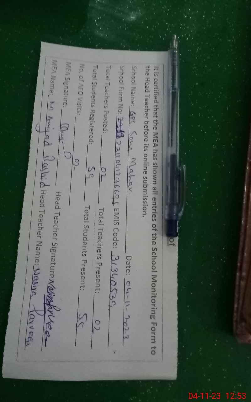 | EMIS Code: 31340539 | Name of School: GGPS SONA MEHR | |||