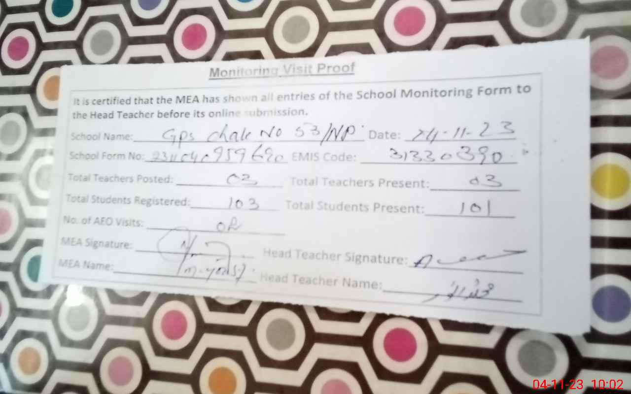 | EMIS Code: 31330390 | Name of School: GPS CHAK NO. 53 NP | |||