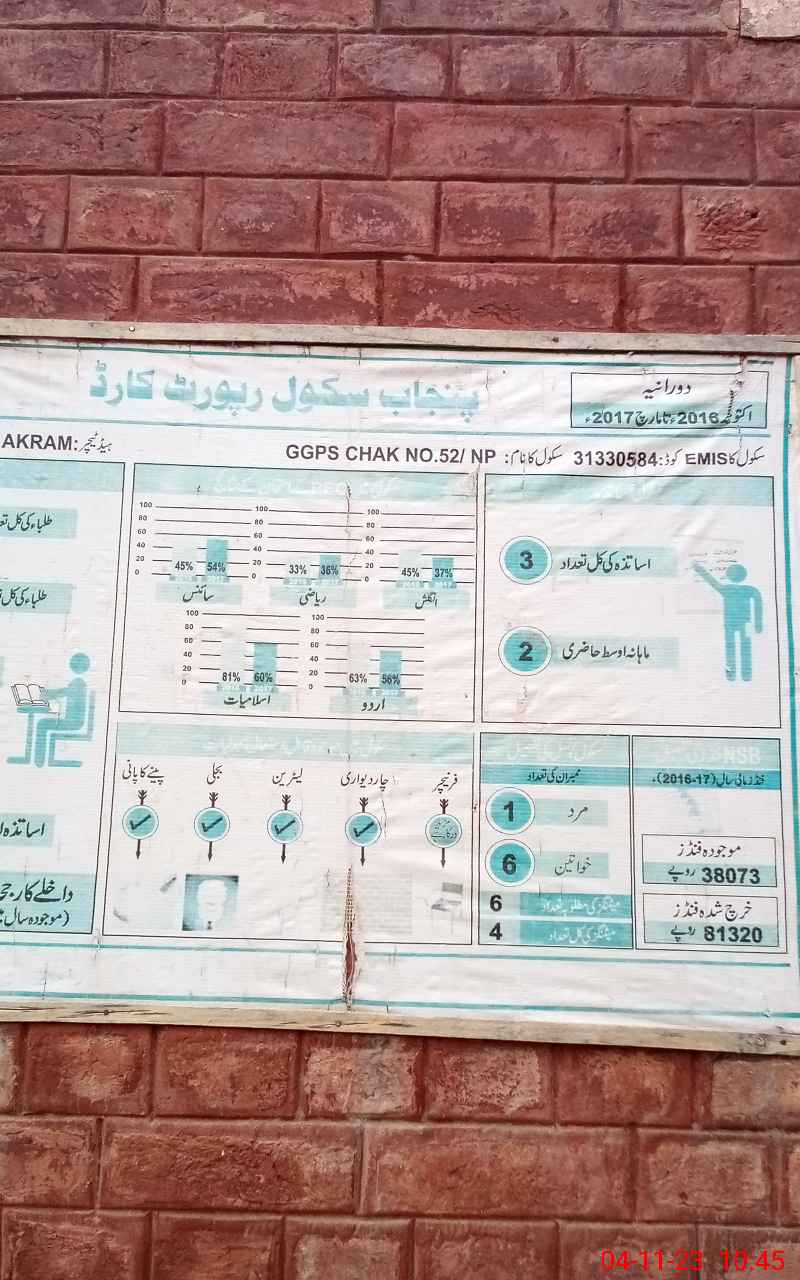 | EMIS Code: 31330584 | Name of School: GGPS CHAK NO. 52/NP | |||