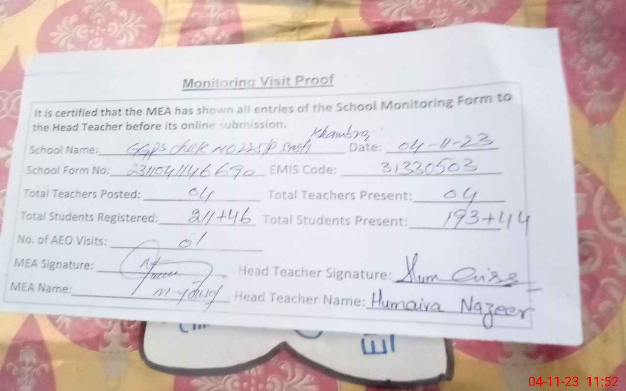 | EMIS Code: 31330503 | Name of School: GGPS CHAK 225/P (Basti Khambra Shahbazpur Road) | |||