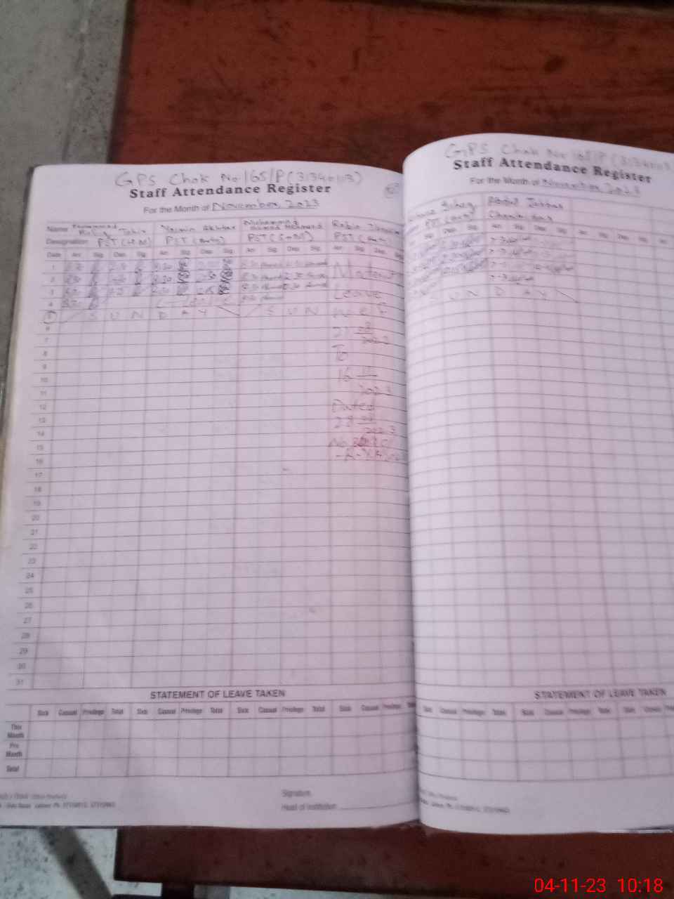 | Leave | Duty | Absent | Maternity | Medical | Ex- Pak |