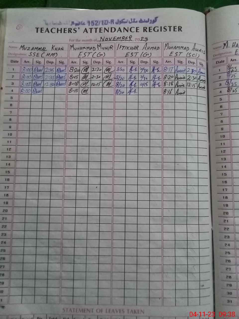 | Name: Mu**** Kh**** Designation: (School Headmaster's/Headmistress's) HEADMASTER Phone/Cell Number: 03**** |