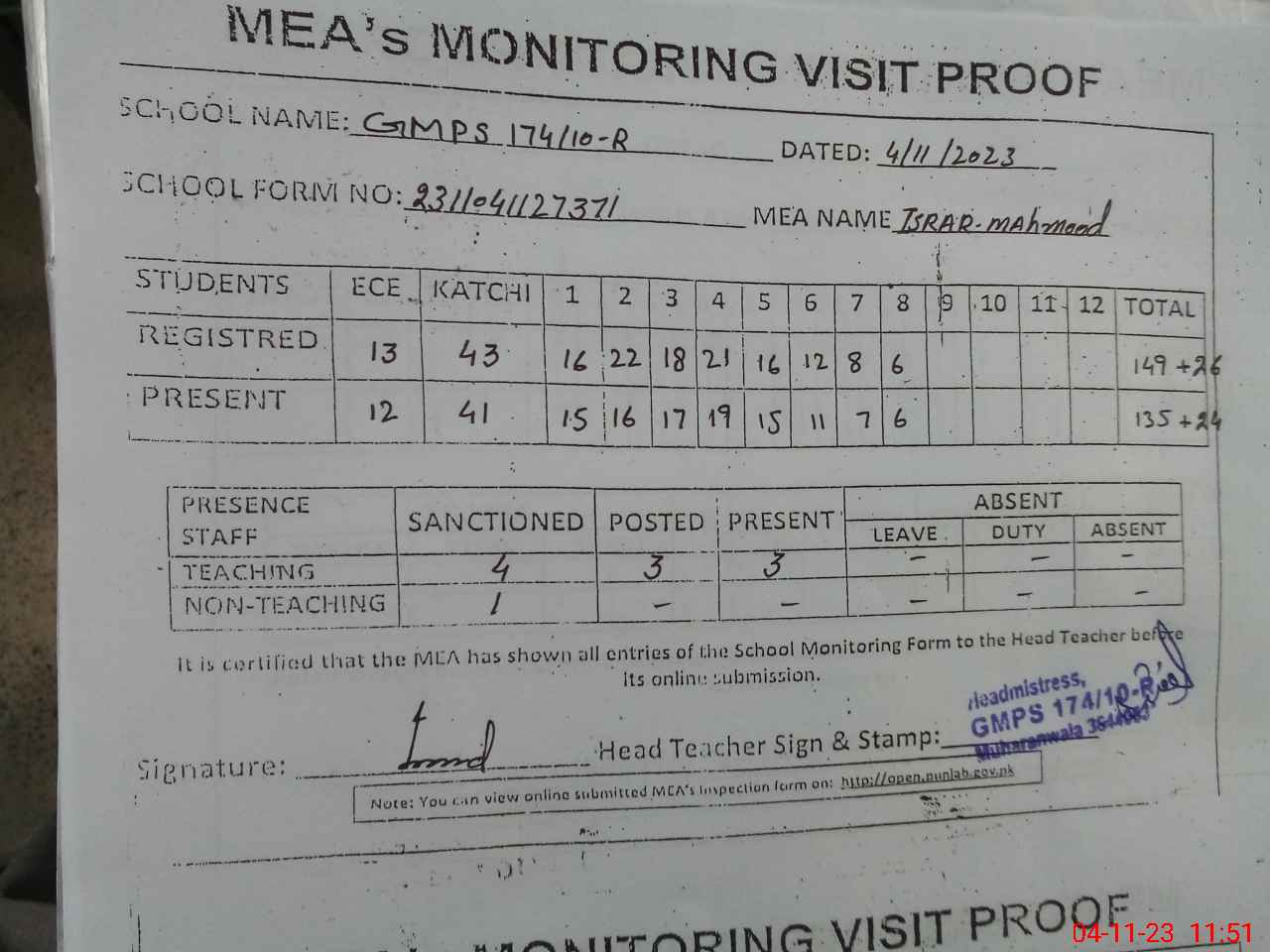 | EMIS Code: 36440531 | Name of School: GMPS 174/10-R MUHARAN WALA, JAHANIAN | |||