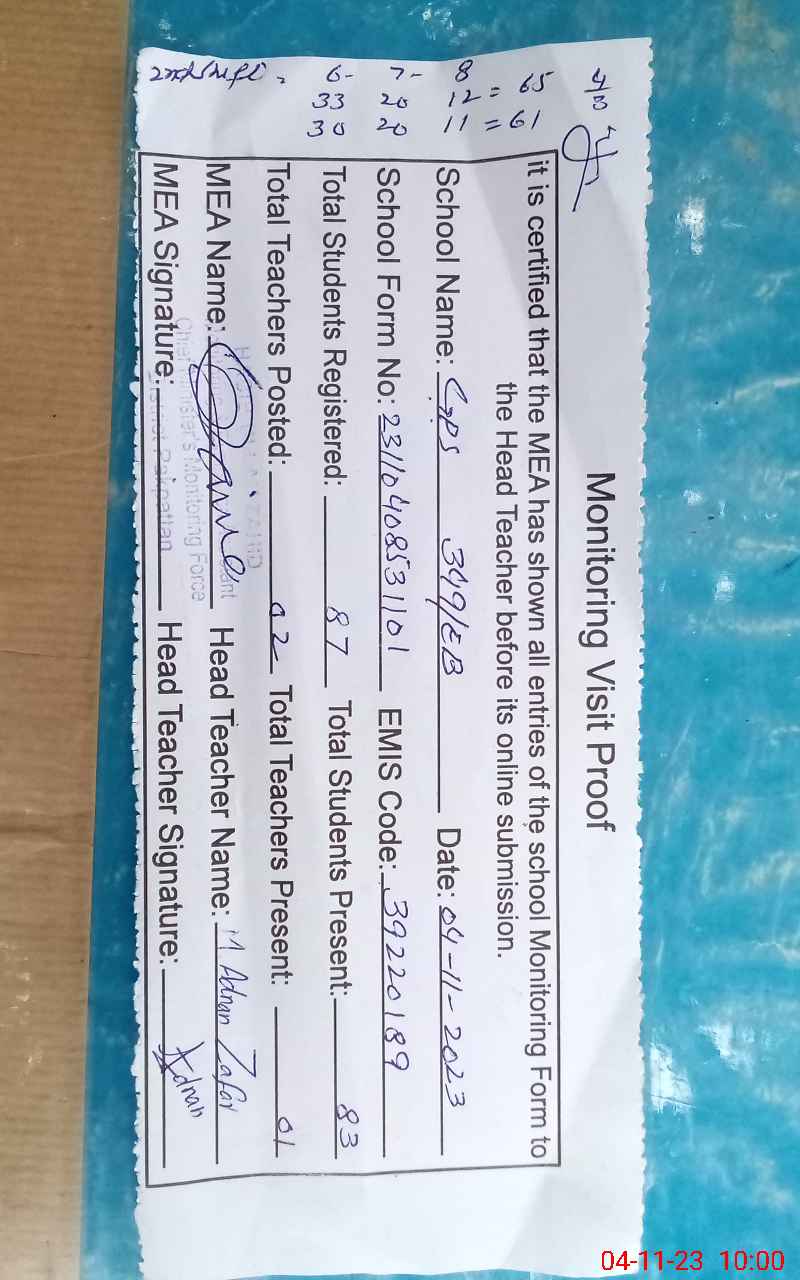 | EMIS Code: 39220189 | Name of School: GPS 349 EB | |||