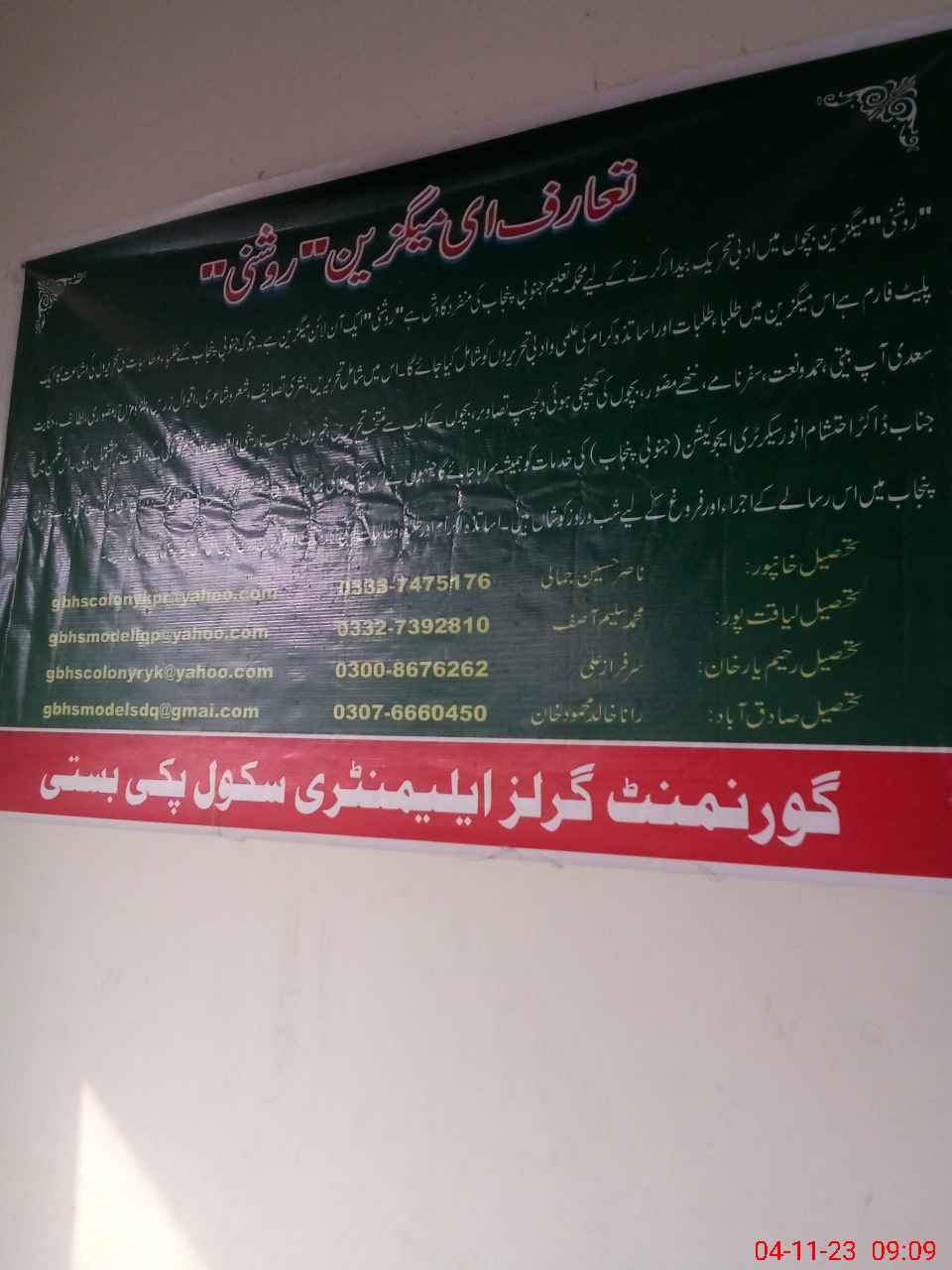 | EMIS Code: 31330799 | Name of School: GGPS PAKKI BASTI | |||