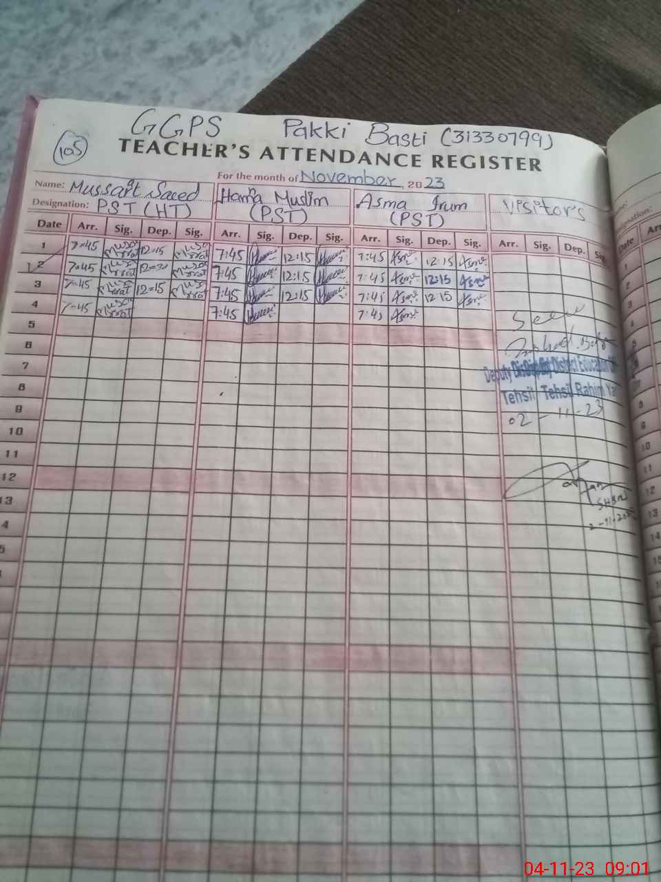 | Name: Mu**** Sa**** Designation: (School Headmaster's/Headmistress's) PST Phone/Cell Number: 03**** |