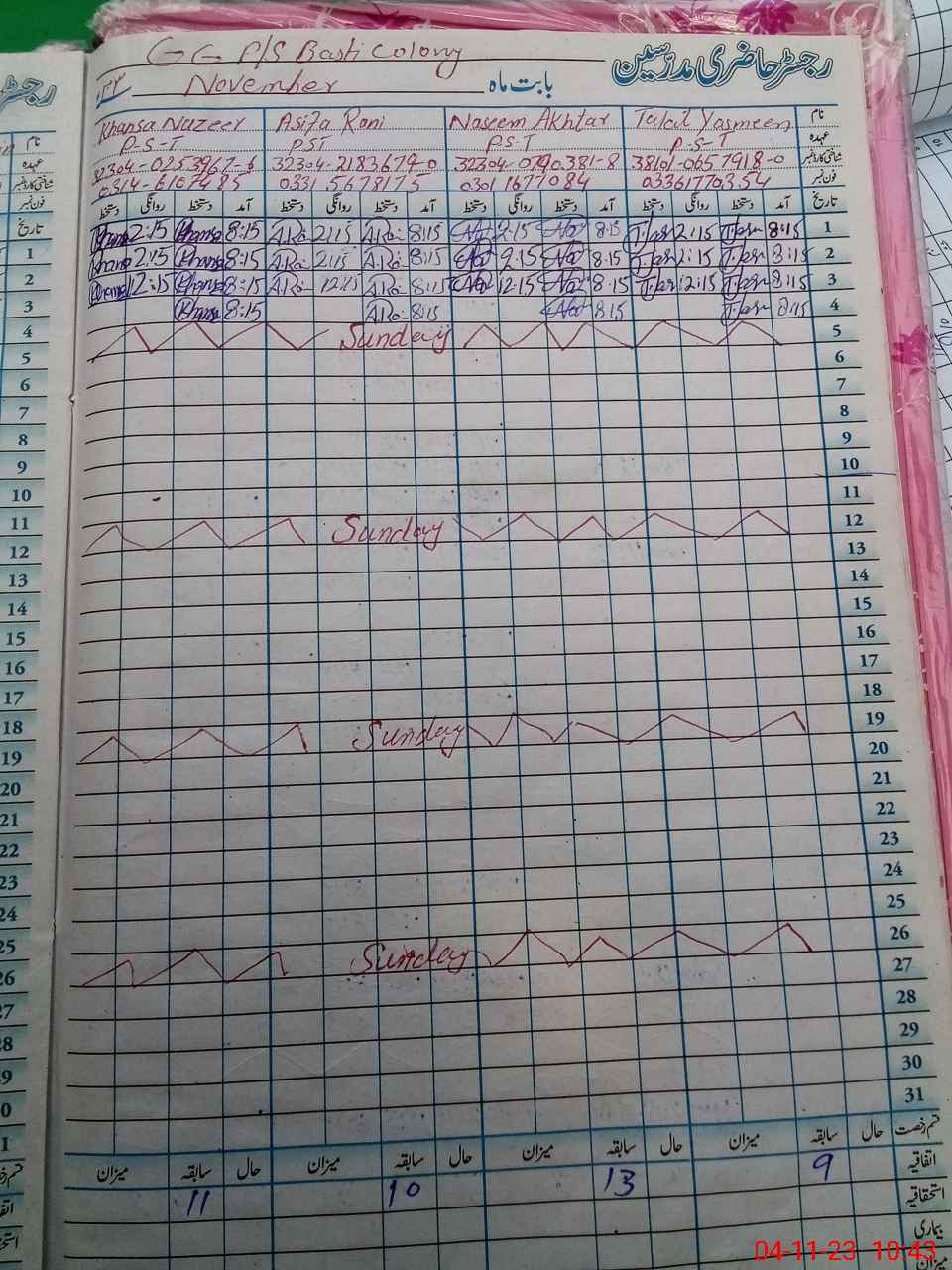 | CNIC | Full Name | Designation | R/C | Absence During Last Calender Month |