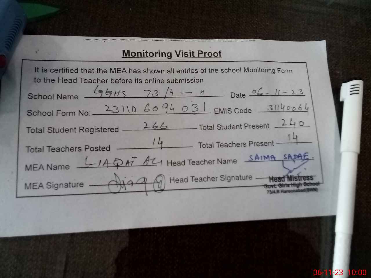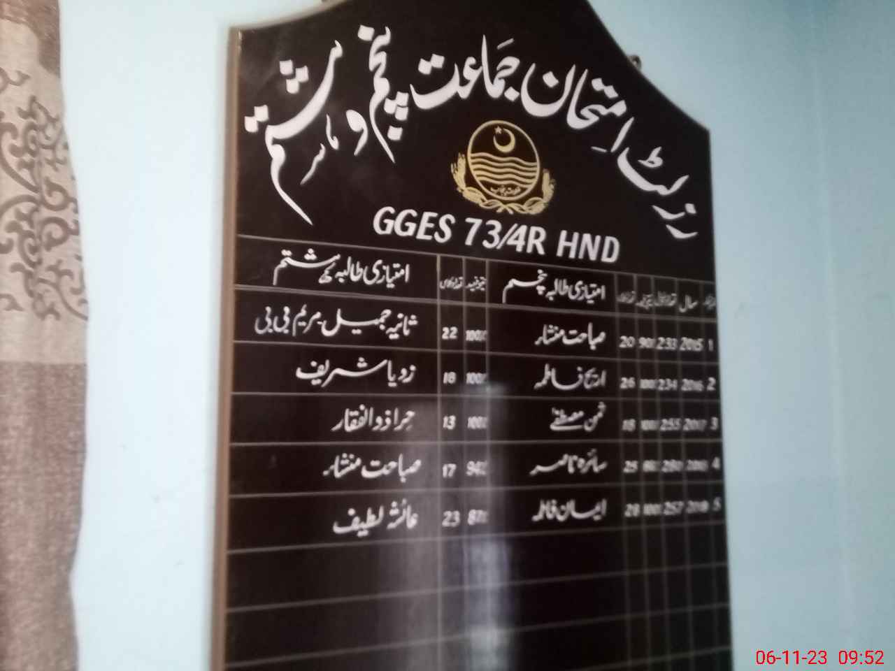 | EMIS Code: 31140064 | Name of School: GGHS CHAK NO. 73/4-R | |||
