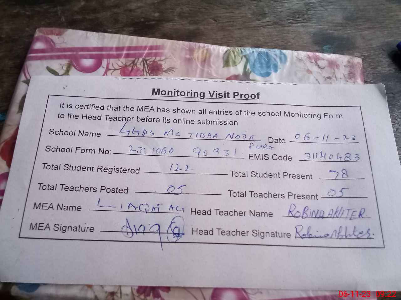 | EMIS Code: 31140483 | Name of School: GGPS MC TIBBA NOOR PURA | |||