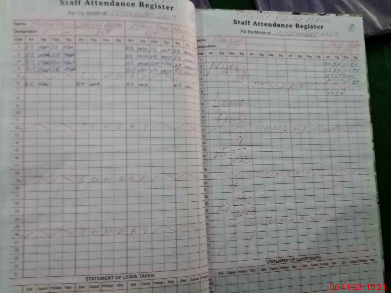 | Leave | Duty | Absent | Maternity | Medical | Ex- Pak |