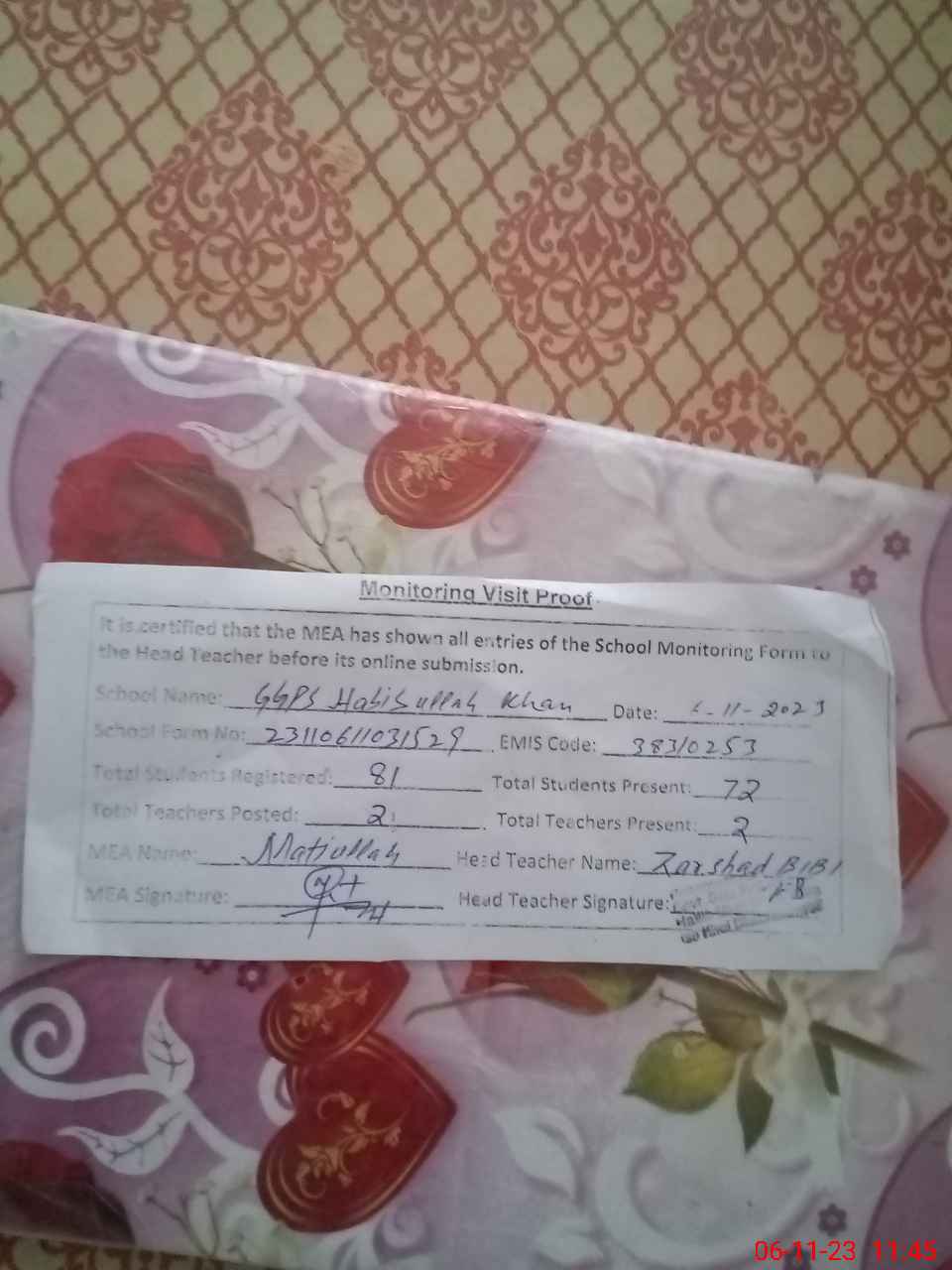 | EMIS Code: 38310253 | Name of School: GGPS HABIB ULLLAH KHAN WALA | |||