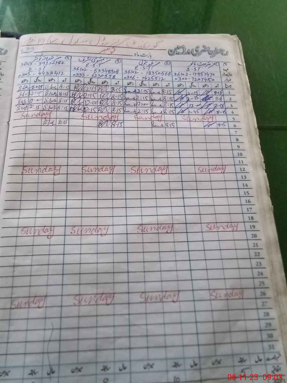 | CNIC | Full Name | Designation | R/C | Absence During Last Calender Month |
