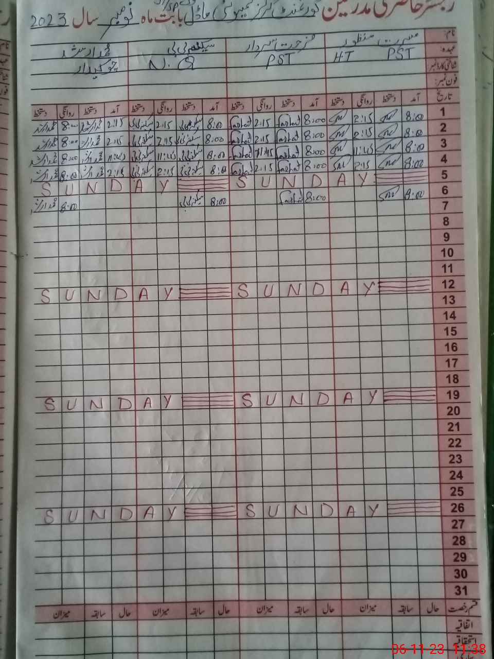 | CNIC | Full Name | Designation | R/C | Absence During Last Calender Month |