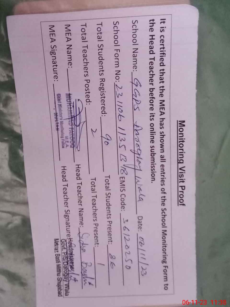 | EMIS Code: 36120250 | Name of School: GGPS DAROGAY WALA SHUJABAD | |||