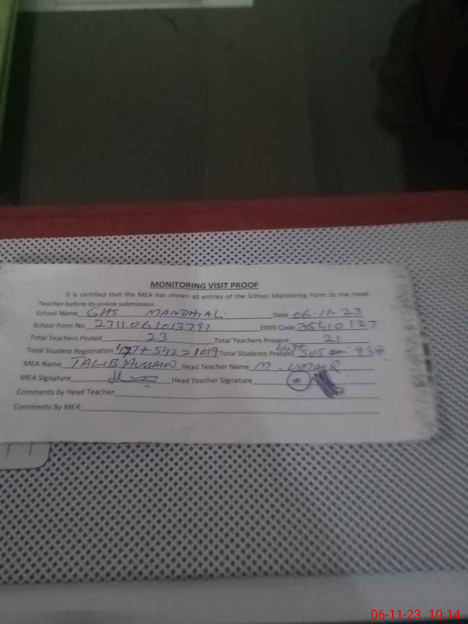 | EMIS Code: 35410127 | Name of School: GHS MANDHIALI | |||