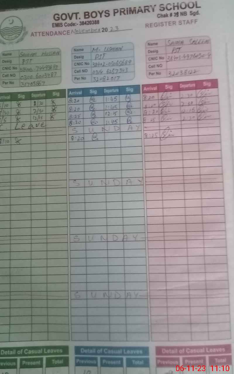 | Name: SA**** HU**** Designation: (School Headmaster's/Headmistress's) PST Phone/Cell Number: 03**** |