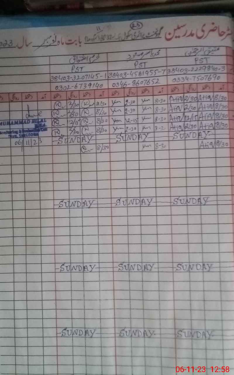 | Name: AT**** URRE**** Designation: (School Headmaster's/Headmistress's) PST Phone/Cell Number: 03**** 75**** |