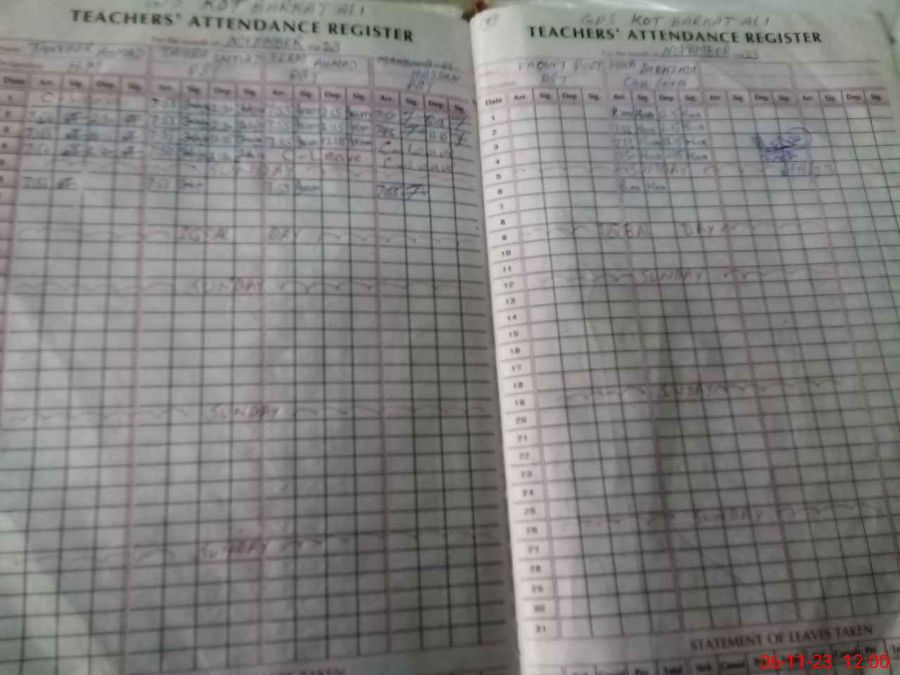 | EMIS Code: 36430244 | Name of School: GPS KOT BARKAT ALI, TULAMBA | |||