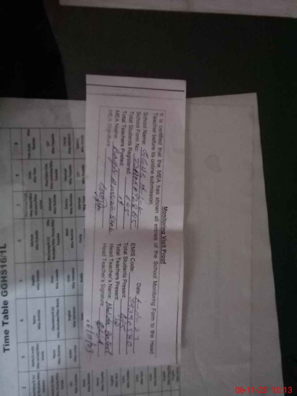 | Name: KH**** Ba**** Designation: (School Headmaster's/Headmistress's) HEAD MISTESS Phone/Cell Number: 03**** |