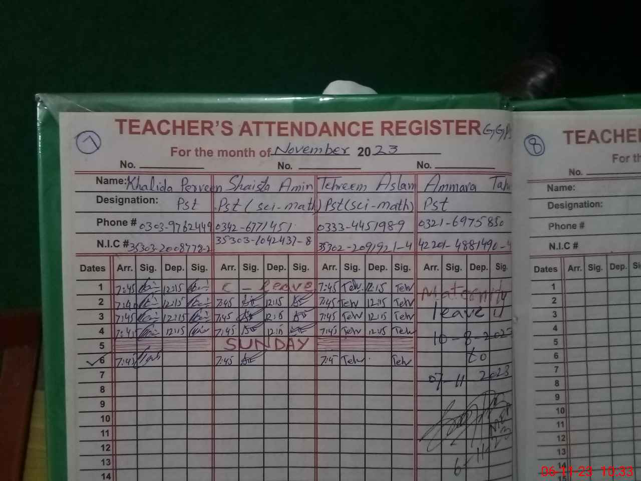 | 42**** | Am**** Ta**** | PST | Regular | 31 | 0 | 0 | 31 | 0 | 0 | 0 | 0 | 0 | Maternity |