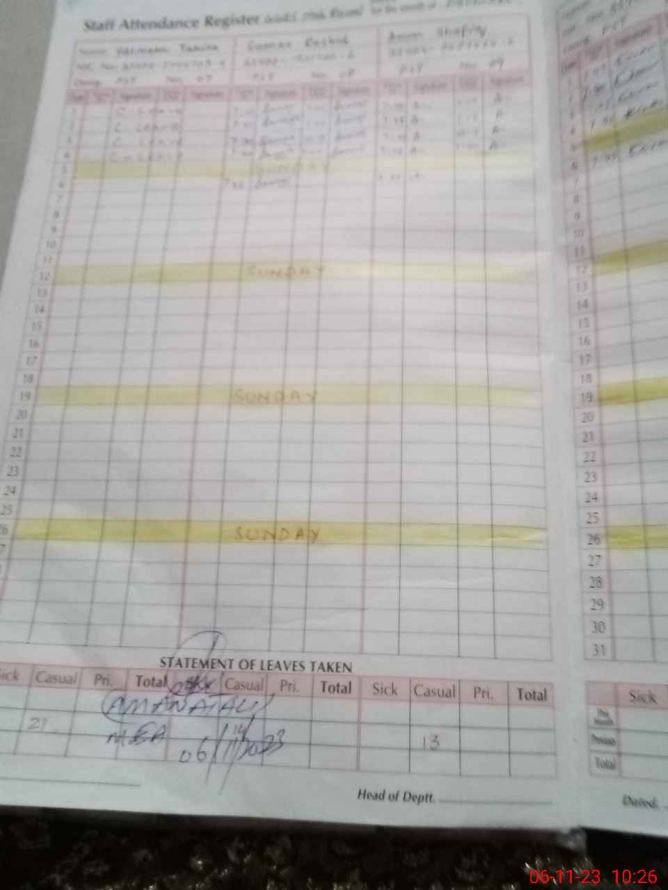 | 35**** | Ya**** Ta**** | 1 | 1 | 0 | 0 | 0 | 0 | 0 | 0 | 0 | 0 | 0 | Absent (Un-Authorized) |