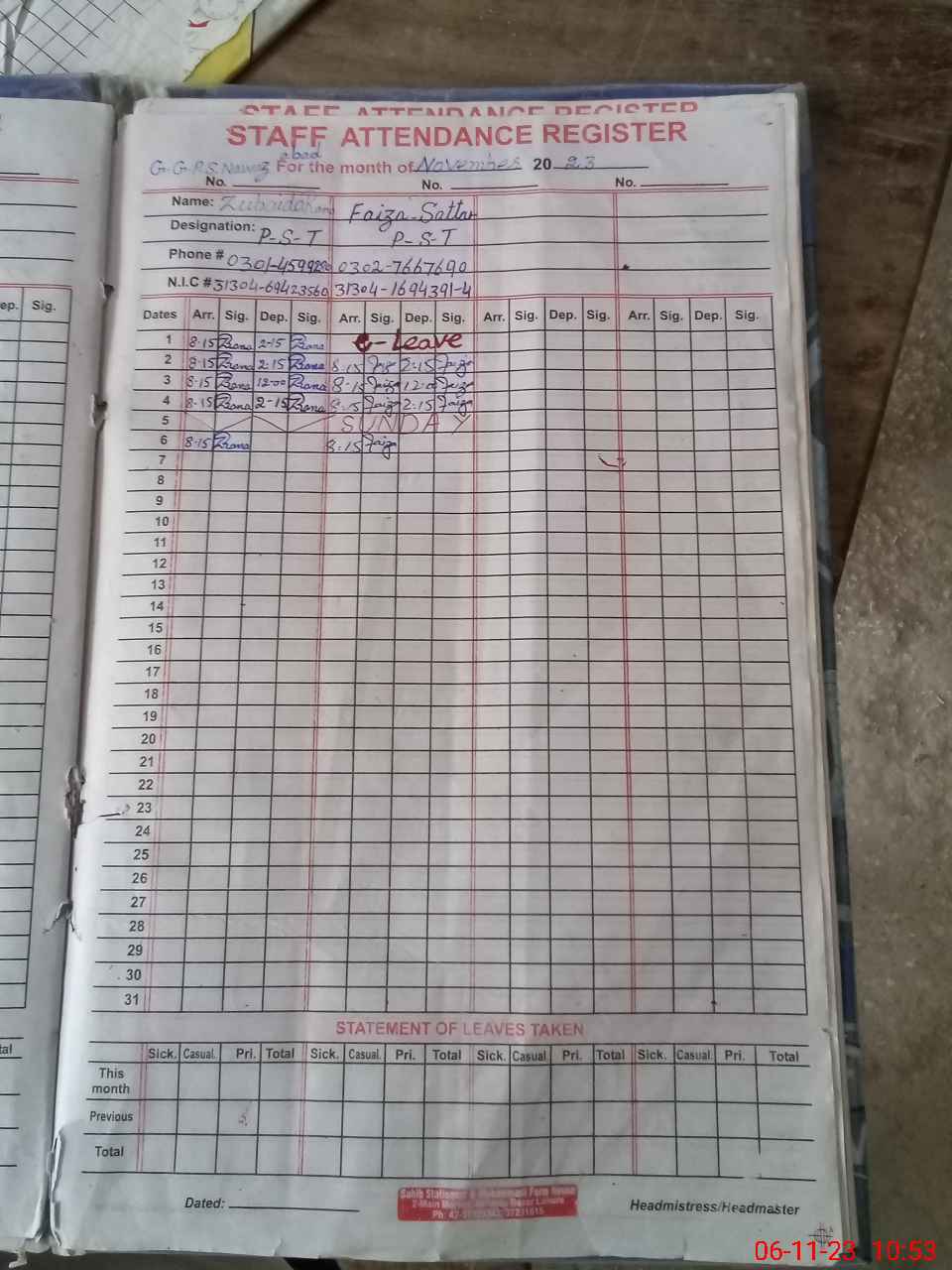 | Name: Zu**** Ra**** Designation: (School Headmaster's/Headmistress's) PST Phone/Cell Number: 03**** |