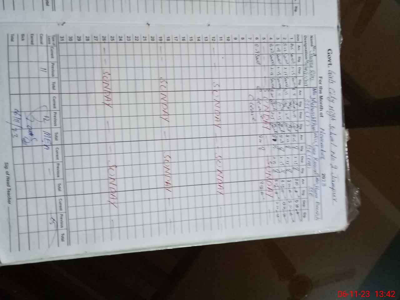 | CNIC | Full Name | Designation | R/C | Absence During Last Calender Month |