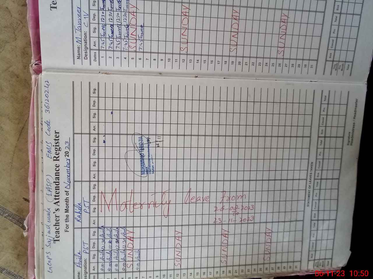 | Name: An**** Designation: (School Headmaster's/Headmistress's) PST Phone/Cell Number: 03**** |