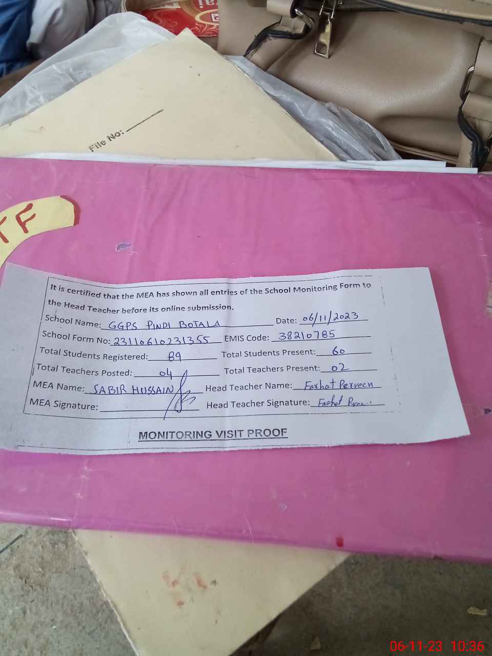 | EMIS Code: 38210785 | Name of School: GGPS PINDI BOTALA | |||