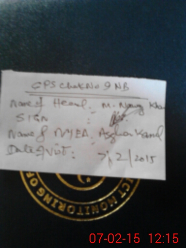 | EMIS Code: 38410142 | Name of School: GPS CHAK NO.9 NB | |||
