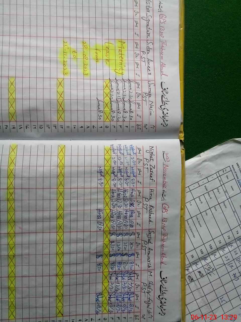| CNIC | Full Name | Designation | R/C | Absence During Last Calender Month |
