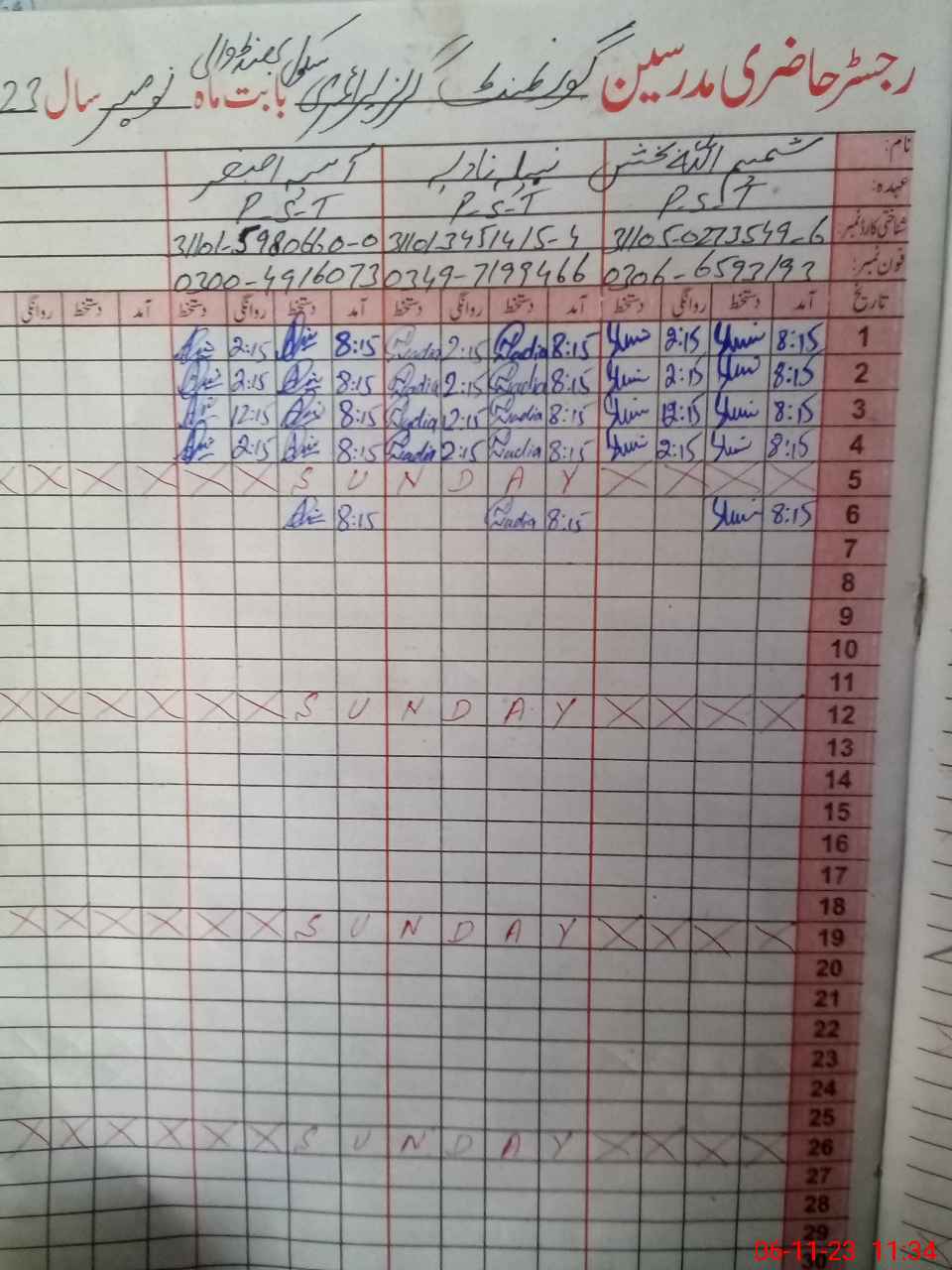 | Name: SH**** AL**** BA**** Designation: (School Headmaster's/Headmistress's) PST Phone/Cell Number: 03**** |